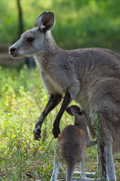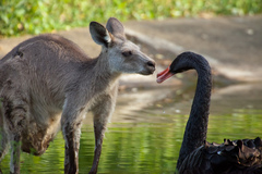 のようにも見えるけどカンガルーが近づくと黒い白鳥の方がクチバシで突っついてました。