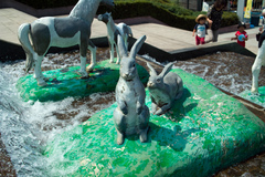 各所に動物とのふれあいゾーンみたいなのがあって、動物たちにはいい迷惑ていうかウサギとか触られまくってたりしたけど、ストレスで死んじゃったりしないのかしら。心配。