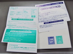 当選すると当選番号みたいなのが記載されたハガキが来て、身分証明となるモノか、住所の記載のある公共料金の封筒2個以上を会場へ持参して、会場でそれらを提示するとチケットと交換らしいです。