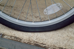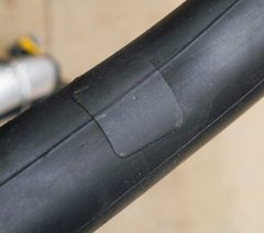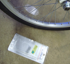 ロードのタイヤだとイージーパッチでも、チューブとタイヤ・リムが密着するのであんまり剥がれるとか遭遇したことないですけど、こういうママチャリ的なタイヤだと、エア入れた状態でもリム側はスキマがあいてるよーで、耐えきれないみたいね。昔ながらの厚くて黒いパッチだと大丈夫なんでしょう。