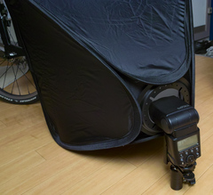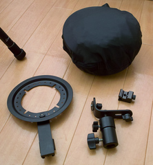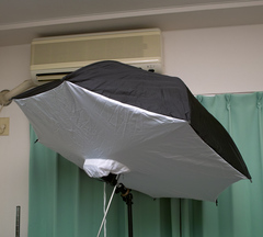 そんで後ろにクリッポンストロボを付けると簡単なソフトライトボックスに