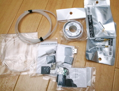 純銀単線0.5mm、オーグラインを1mずつとWM-PORT用ドックコネクタキットを3つとハンダと透明petスリーブ(6mm)と3.5mmプラグ3個