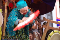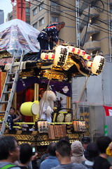 テケテン聞こえるほうへ歩いて行くと山車がいました