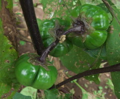 そーいえばナスの木になんかこんなの出来てるんだけど、ナスなんだかピーマンなんだか不気味