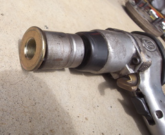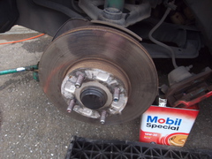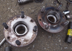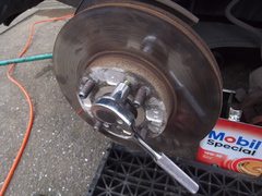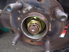 それでも、車に装着されてる状態ならそれで回るけど、今回買ったようなナックルのほうのナット外すのはけっこー大変かもね。足で押さえてるくらいじゃ回せないので、でけー万力とかに挟んでやるとかかしら。