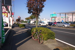 この道で、写真の背中方面へ向かいたいなら、一旦国道を渡って、反対側の歩道を走るべきでしょう(歩道を走っていいとして)