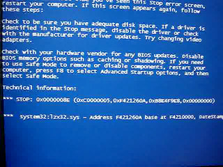 いやーどうもこないだから起動時にリブートかかったりかからなかったりしていてそれがまた症状が出たり出なかったりしてたので対策出来ずにいたのですが、今回WindowsUpdateすると必ずブルースクリーンになって落ちるという再現性の高い現象に会うことができたので、何度もWindowsUpdateしてそのブルースクリーンに書いてある事読もうと試みるも一瞬でヨメネェ・・・
