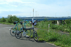 ひさびさに友達が平日休みだというので、チャリでどこか。ということで友達はビアンキのミニベロ8なので自分もあわせてフレッタで行って来ました。ビアンキペア。うちのはチェレステカラーじゃないけどな。