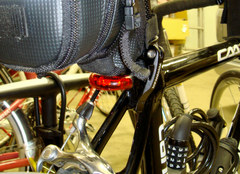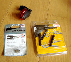 キャットアイのホイールマグネットとトピークのリア用点滅ランプとジャグワイヤのプロテクター。