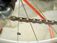 この状態でオイルを注して、チェーンを雑巾で拭くと、クランクを回しても音がしねえ!スムースに回るようになりました。