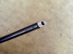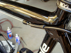 それからディレーラーのワイヤー掃除をしようと、アウターをフレームから外してみると