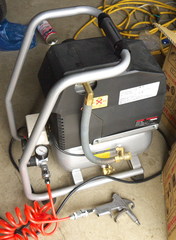 まそれでもタイヤのエア入れたり、ブロアガン(口の小さいヤツ)使ったりするのには手軽でいいかな。タンク小さいのと1馬力ってのも相まって、カラ状態からでも40秒前後でタンクいっぱいになるし。