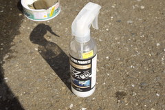 水洗いして、ぬれたままのところにこれを吹き付けて、スポンジで軽くこすって、あとは水を拭き取るだけ。