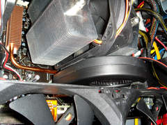 ブロアファンの右側は、さっきくっつけた足でビデオカードの上に乗ってます。