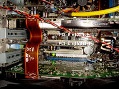 ということでPCI-E x16スロットに取り付け。これがへたれマザーだとPCI-E x16にVGA以外のカード付けると変な動きするのとかあるようなのでちょっとヒヤヒヤでしたがどうやらちゃんと動いてる様子。