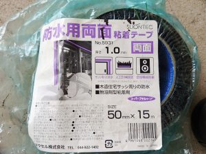 車検は明日なので交換出来ないので、とりあえず塞ぐ方法考えたけど、黒ゴム接着剤は固まるの待ってるのタルいし、自己融着テープ巻くのも剥がれそうだし、ってことで今回はブチル系の両面テープ貼ってみることに