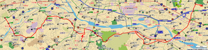 んで聖蹟桜ヶ丘テイストを満喫したので、川崎街道を東に・・つーか坂!聖蹟桜ヶ丘駅から桜ヶ丘CCまでの1kmくらいがえらい坂になってます。桜ヶ丘CCからは多摩川渡るまでの約5kmはひたすらゆるーい下りなので、その分を登らないといけないわけですよ。ひーこら。