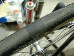 そういえば、こないだタイヤに空いた穴ですが、その後、外からもイージーパッチを貼ってみたのです。その後100km前後は走っていますが、現在はこの状態