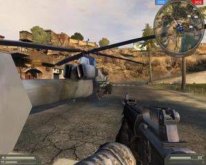 自分の乗ってるヘリの影が地面に。かちょいい。