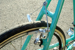 フロント、リアともカンチブレーキ。でも見たところシューはVブレーキ用くさいんだけど・・・
