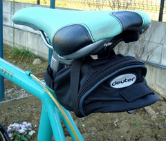 サドルバック。今回はドイターの安いやつ。1300円くらい。あと中にはイージーパッチとタイヤレバーと安い工具を買って入れておきました。