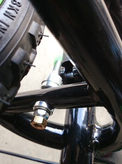 ブレーキアーム自体をテクトロあたりの2000円くらいのにするだけでもかなり違うと思うけど、ブレーキ台座からリムまでが結構離れてるから、ロングアームのかな。まぁそれは最後の手段かな。