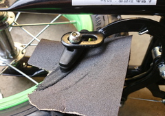 けど、あんま変わらないつーか、リムの角度とブレーキのアームの角度が合わなくて、シューの端っこしか当たってないもよう。