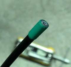 しかしシフトワイヤんは結構な力がかかるにもかかわらず、ケーブルエンドがプラスチックというのが問題あるよな。ので今回はブレーキ用ケーブルエンドをつけてみることに。