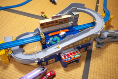 っていうか、これ、この画でいうとプラレールが右側から来て左側へ抜けていくような構造なんですが、それだと他のプラレール部品のポイントと接続部分がオスメス逆なのよね。
