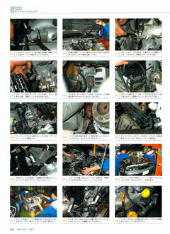 この本はSR20を降ろすところから分解してオーバーホールしてくみ上げるまでの工程をこんな感じで写真付きで詳細に解説してある本なのです。