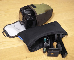 手前のは、ノーダルニンジャ。これの入れ物も一緒に買おうとカメラ売り場物色してたんだけど、キルティングやスゥェードの巾着袋が1200円くらいするのね。