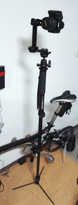 とりあえず、一脚にフォールディングベースと雲台を付けてみた。