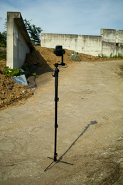 この一脚だと、3本足開いたまま持ち歩いてもそんなかさばらないし、設置も1本伸ばすだけなので非常にスピーディー。
