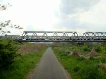高坂橋の下くぐるまえ、電車きたっ と思ってから、自転車漕ぎつつウェストバックをおなか側にまわして、デジカメ取り出して電源入れてからシャッターでも写せた。デジカメ取り出しが早くなったのか東上線が遅いのか(^^;