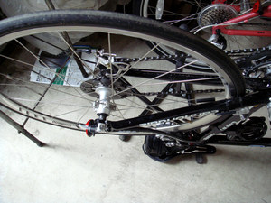 それからリアタイヤのクイックをゆるめて、2~3回くるくるっと緩める。
