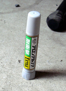 とりあえず、裏側には穴部分に、通常のパンク修理用ののりを穴に注入。