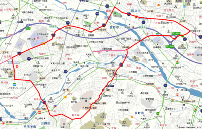 まぁおおむね片道2車線ってところで20号はいいんですが、国立府中インターの入り口はやっぱり道の真ん中走るってワケにもいかないのでインターの外側へ逃げるようだし、そのまま万願寺駅方面へ走っていくとそのまま石田大橋に入っちゃってコワイコワイなので、あんまりいいコースじゃな・・・