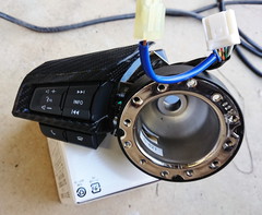 あと気に入らないのがハンドル・・なんだけど、ハンドルにはオーディオと、インパネ内のインフォメーション切り替えボタンと、電話のフックボタンなどが付いてるので、交換しちゃうとそれらが使えなくなるのがさみしい。