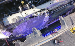 ほんで、その光を受ける部分として、前から見て右半分はエアコンのコンデンサあるのでいいとして、左半分は素通しだったので、アルミのメッシュを設置