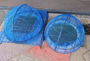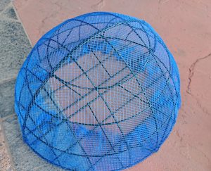 あまりの日照り続きで、メダカの水瓶の上を解放にしておくとミツバチがうなるほど来ちゃうので、100均で適当な部品買ってドーム型のなにかを作ってみる