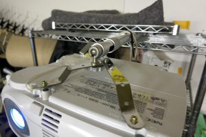 先日倉庫?につけた5980円のプロジェクター、取り付けはこんな感じでした。
