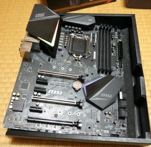 マザーはMSIのGAMING EDGE  ACとかいう、ハイエンドでもないけど、中の上くらいのやつ。買ってから気づいたけど、WiFiとBluetoothモジュール付いてた。デスクトップにWiFiいらなくね?