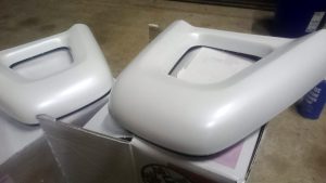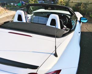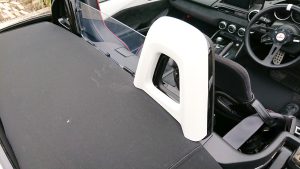 ロードスターの頭の後ろのパーツ、シートバックバーベゼルっていうのかな。なんとなくボディ同色にしてみたくてヤフオクでゲット。送料別1500円とか。