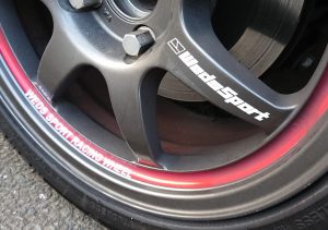 WedsSportのロゴとリムの文字。スポーク部分のロゴはともかく、もともとリムにはこんな感じの文字が書いてあったけど消えちゃったのね。
