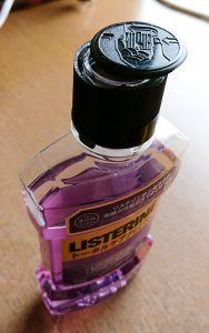 大きいリステリンにサービスで付いてた小さいリステリン、キャップ強めに締めたら天井抜けた
