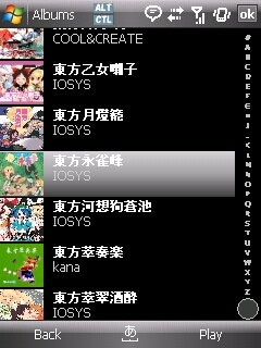 曲のブラウズは上下左右で行う、iPodっぽいインターフェイス。アルバムアートが表示(ID3V2に埋めこまれたjpg)を表示してくれるのはちょっといいね。