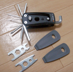 なんでこれにしたかというと、スパナが付いてるから。あとタイヤレバー。当初、これじゃなくて普通のアーレン+ドライバーのやつと、スパナとタイヤレバーを持てばいいかと思ったんですが、なんとなくこれに。