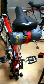 こうした意味ってのは、最近これでチャリ通勤することが多いので、途中でパンクしても通勤バス通りなので、畳んで袋入れちゃってバス乗ればいいや。ということで輪行袋を携帯することに相成ったわけですが、これならパンクにしても故障にしても、工具必要ないじゃん(^^;