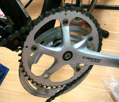店の人に聞くと、2008年のカプレオ搭載モデルからフロントが47Tになったんですよ。とのこと。やっぱりみんな回し切っちゃう悩みがあったんですねぇ。ということで、どうもチェーンリングだけ注文出来ると言うことで注文してみたのです。先週。