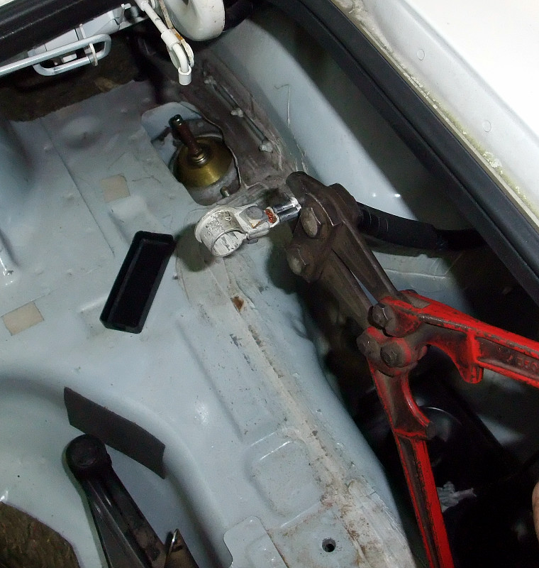 そのカットした部分にシートベルト受けのステーが付いてたので、それを左後ろのシート受け部分に移植(アーク溶接)